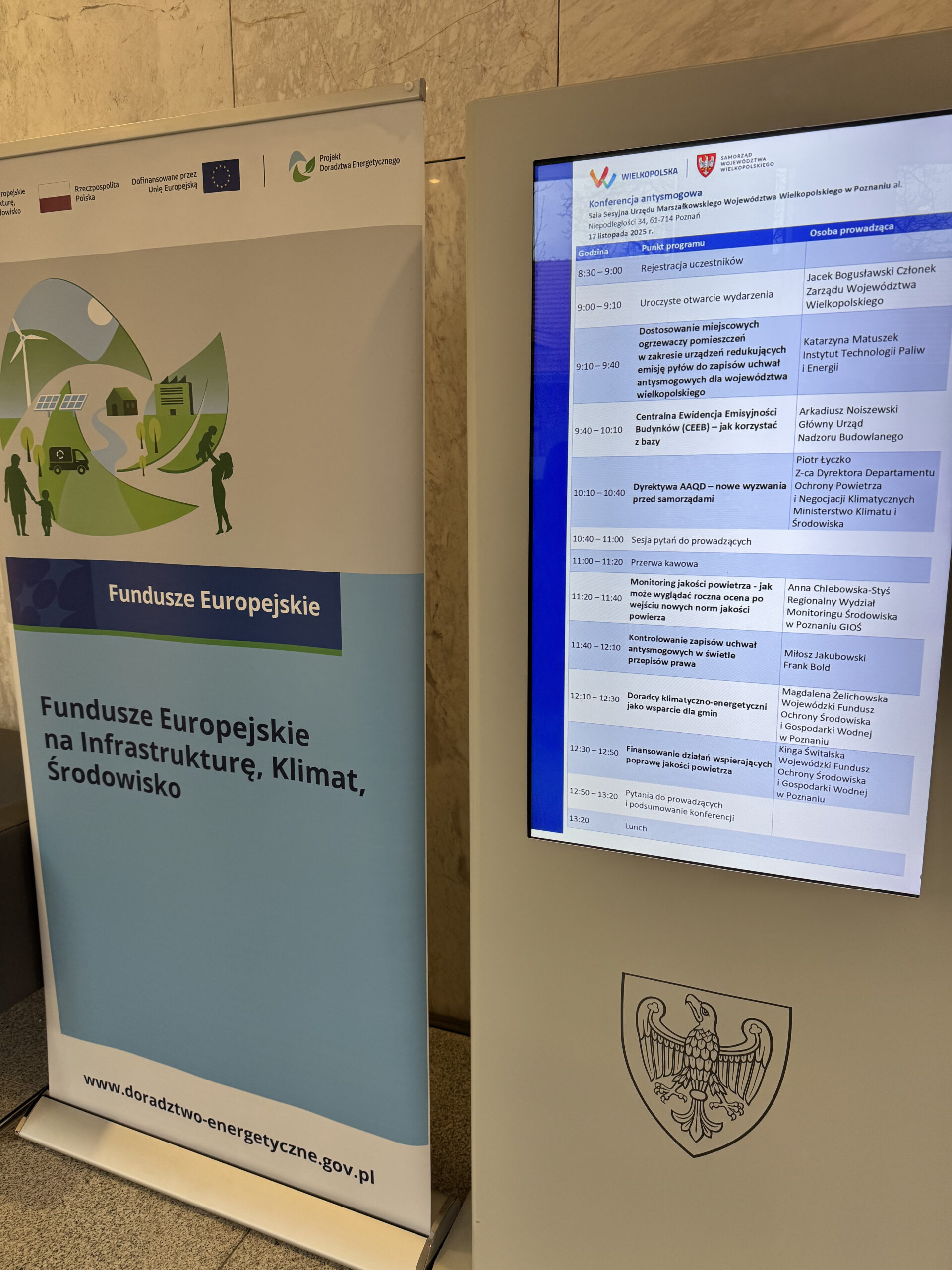 17 listopada br. w Sali Sesyjnej Urzędu Marszałkowskiego Województwa Wielkopolskiego w Poznaniu odbyła się Konferencja Antysmogowa. Jej celem było stworzenie przestrzeni do wymiany wiedzy, doświadczeń oraz najlepszych praktyk w zakresie działań antysmogowych. W wydarzeniu uczestniczyli przedstawiciele administracji publicznej szczebla powiatowego i gminnego oraz straży miejskich i gminnych. Na zaproszenie UMWW w konferencji wzięli udział także przedstawiciele WFOŚiGW w Poznaniu – doradcy klimatyczno-energetyczni Projektu Doradztwa Energetycznego. Zaprezentowali oni założenia Projektu, rolę doradców we wspieraniu gmin oraz dostępne instrumenty finansowe umożliwiające poprawę jakości powietrza.