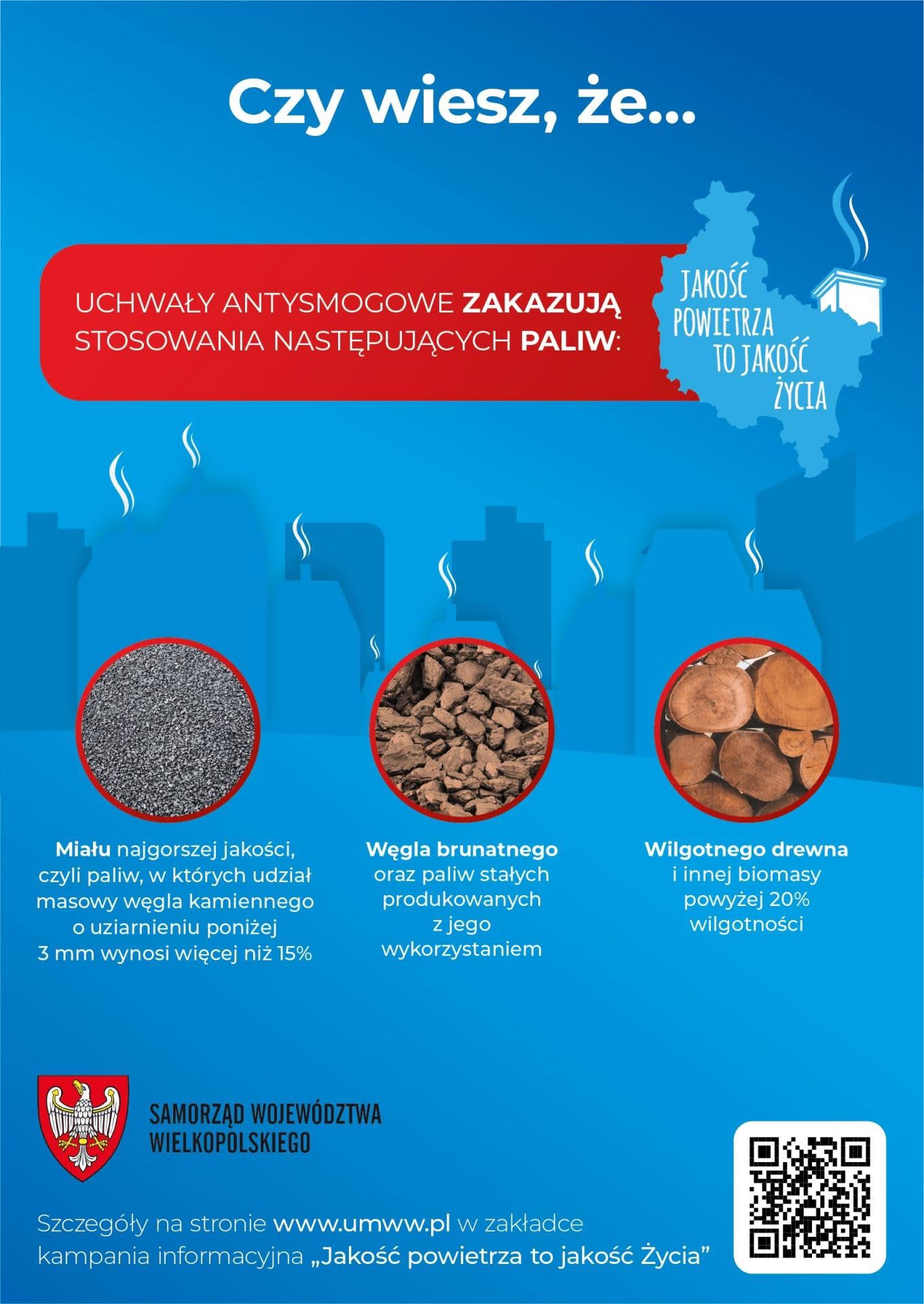 Od 2018 roku w województwie wielkopolskim obowiązują uchwały antysmogowe przyjęte przez Urząd Marszałkowski Województwa Wielkopolskiego. Wprowadziły one ograniczenia dotyczące stosowania kotłów oraz tzw. miejscowych ogrzewaczy pomieszczeń, takich jak kominki czy piece. Znalazł się w nich również zakaz używania najgorszej jakości paliw stałych, m.in. bardzo drobnego miału, węgla brunatnego czy flotokoncentratu.