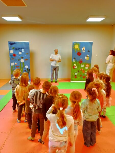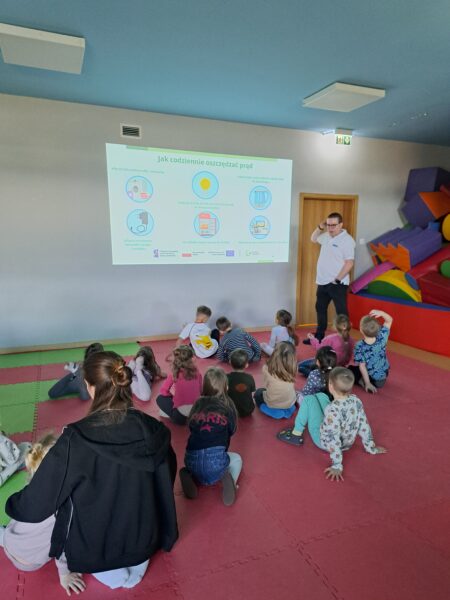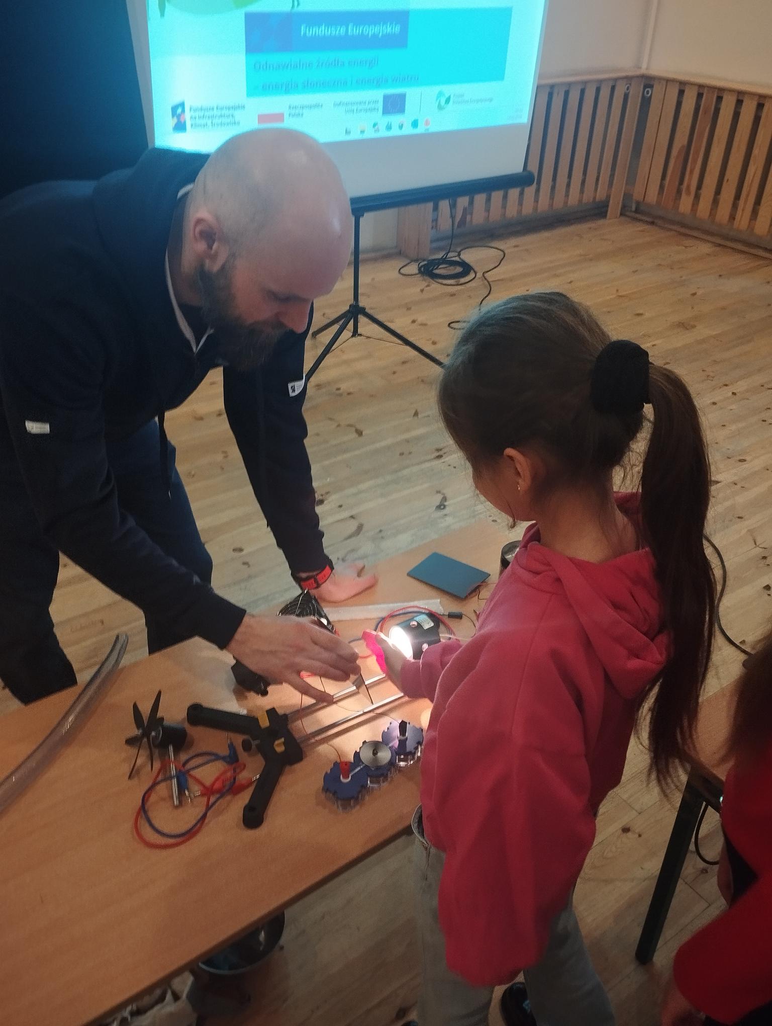 Zarówno przedszkolaki, jak i uczniowie chętnie i aktywnie uczestniczyli w zajęciach, a także odpowiadali na pytania. Szczególnym zainteresowaniem cieszyła się część warsztatowa, podczas której dzieci mogły z bliska przyjrzeć się produkcji energii elektrycznej z mini siłowni wiatrowej i mini paneli fotowoltaicznych. Same również miały okazuję „wytwarzać energię”.