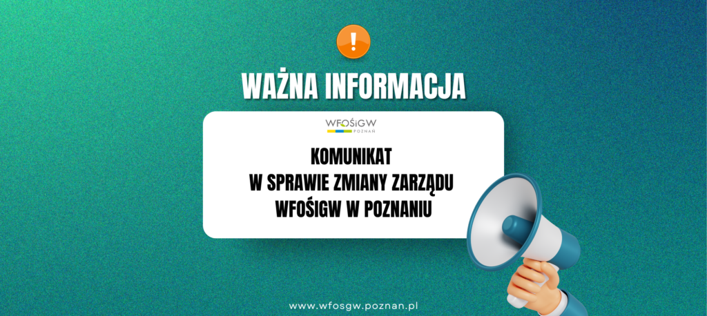 Komunikat w sprawie zmiany Zarządu Wojewódzkiego Funduszu Ochrony Środowiska i Gospodarki Wodnej w Poznaniu