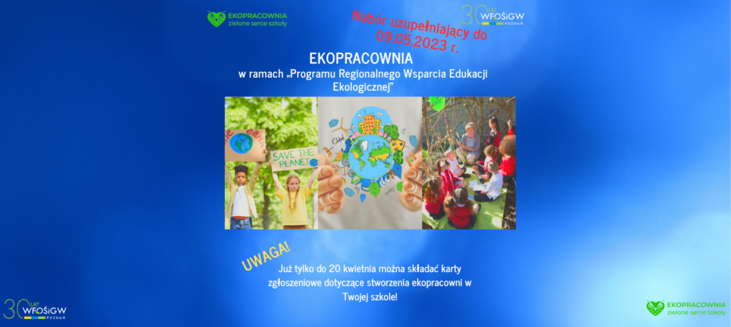 Nabór uzupełniający do 09.05.2023 r. EKOPRACOWNIA w ramach „Programu Regionalnego Wsparcia Edukacji Ekologicznej”. Nabór dwuetapowy (Etap I)