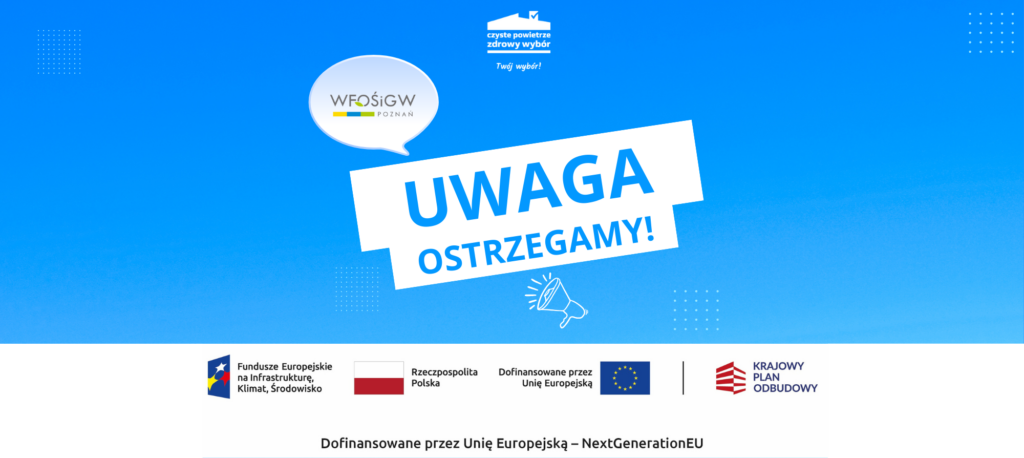 Wojewódzki Fundusz Ochrony Środowiska i Gospodarki Wodnej w Poznaniu ostrzega przed nierzetelnymi firmami świadczącymi usługi w zakresie pośrednictwa i doradztwa w ramach Programu Priorytetowego „Czyste Powietrze”.
