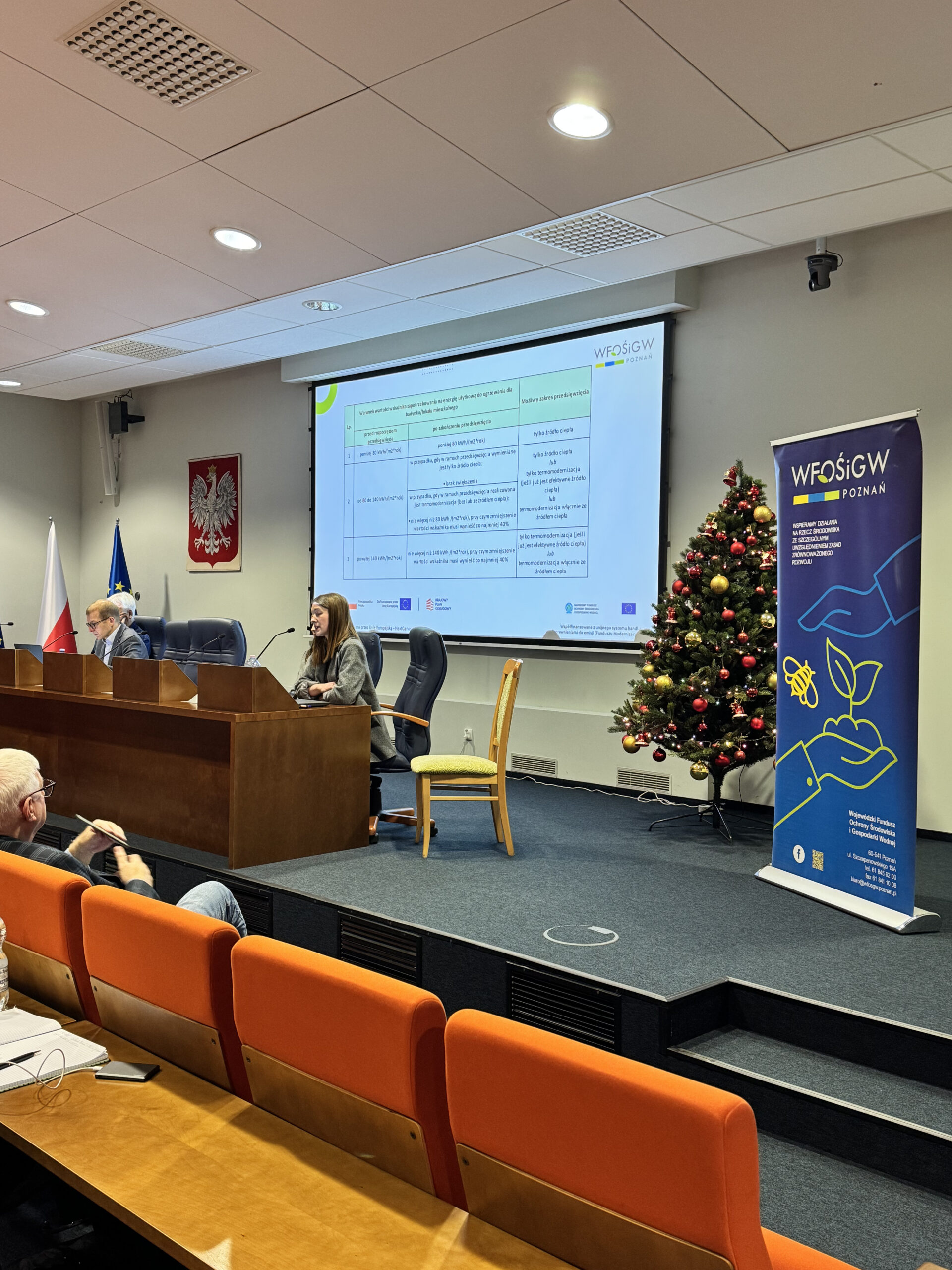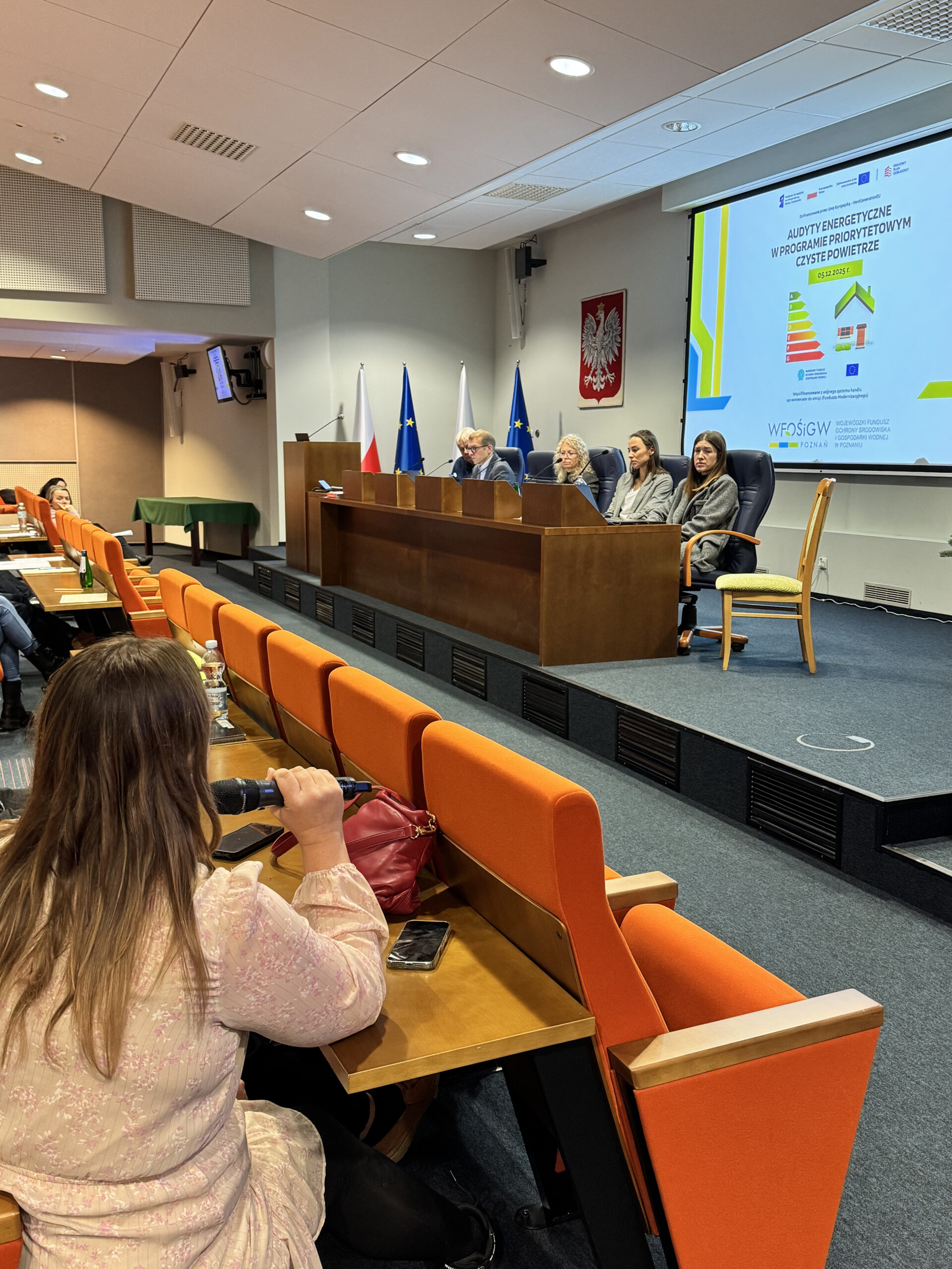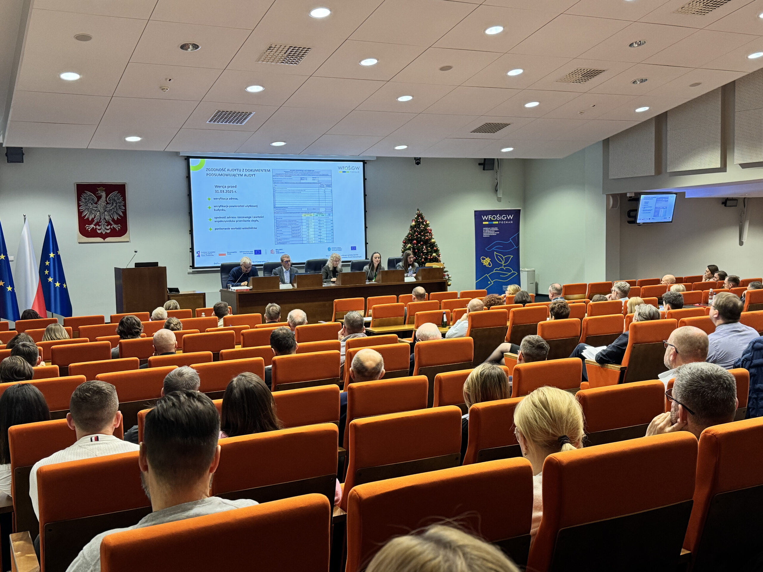 W piątek, 5 grudnia 2025 r., odbyło się spotkanie informacyjne dla audytorów energetycznych wykonujących audyty do Programu Czyste Powietrze, zorganizowane przez WFOŚiGW w Poznaniu. Z uwagi na duże zainteresowanie wydarzenie odbyło się w sali sesyjnej Wielkopolskiego Urzędu Wojewódzkiego.