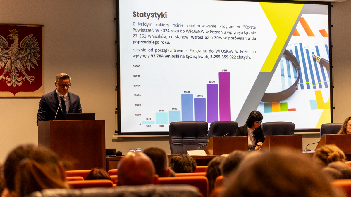 Ruszyła nowa odsłona Programu Czyste Powietrze. W Sali Sesyjnej Wielkopolskiego Urzędu Wojewódzkiego w Poznaniu odbyło się spotkanie z przedstawicielami wielkopolskich gmin. W wydarzeniu wzięli udział: Prezes Zarządu WFOŚiGW w Poznaniu Rafał Ratajczak oraz pracownicy merytoryczni.