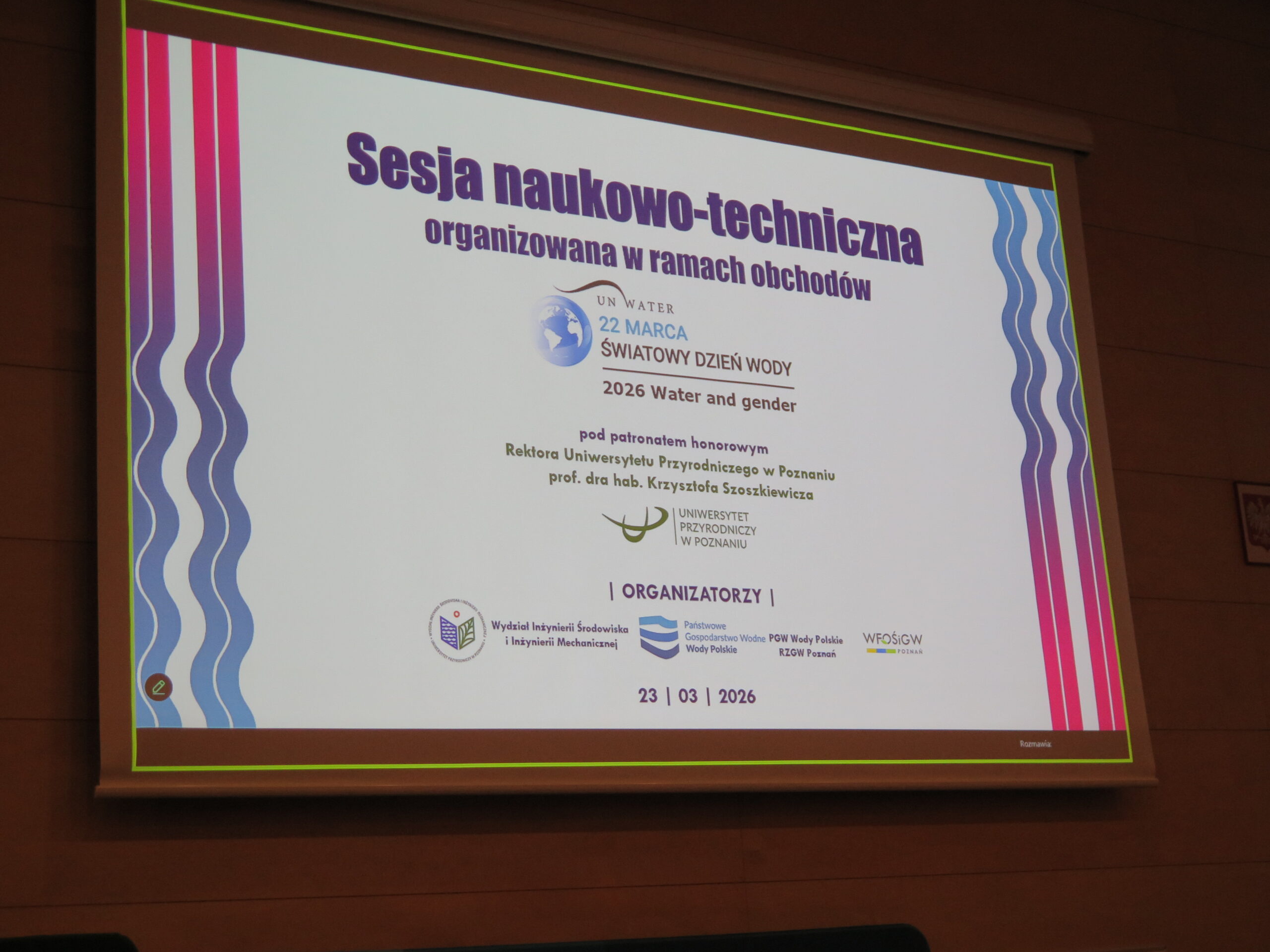 23 marca br. w ramach obchodów Światowego Dnia Wody, na Uniwersytecie Przyrodniczym w Poznaniu odbyła się sesja naukowo – techniczna pod hasłem „Water and gender”.