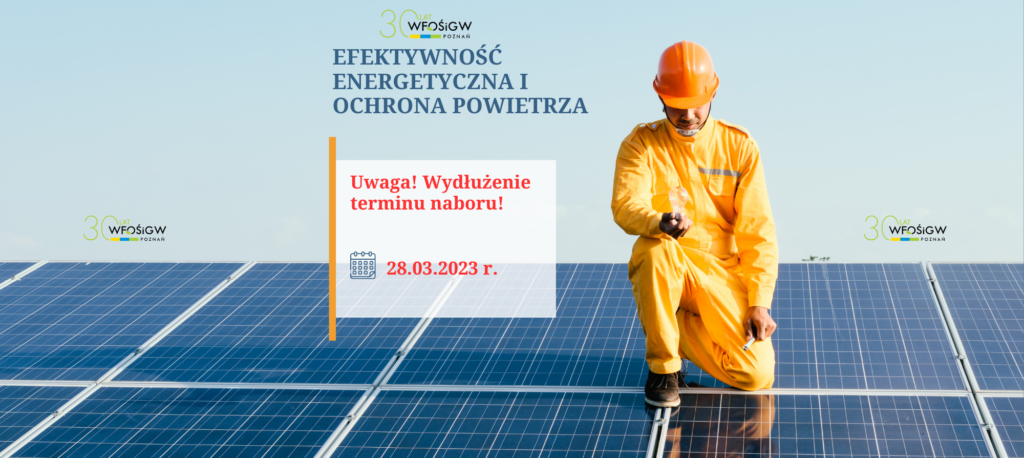 Wojewódzki Fundusz Ochrony Środowiska i Gospodarki Wodnej w Poznaniu uprzejmie informuje o wydłużeniu terminu składania wniosków w ramach Naboru wniosków na przedsięwzięcia z zakresu efektywności energetycznej i ochrony powietrza do 28 marca 2023 roku.