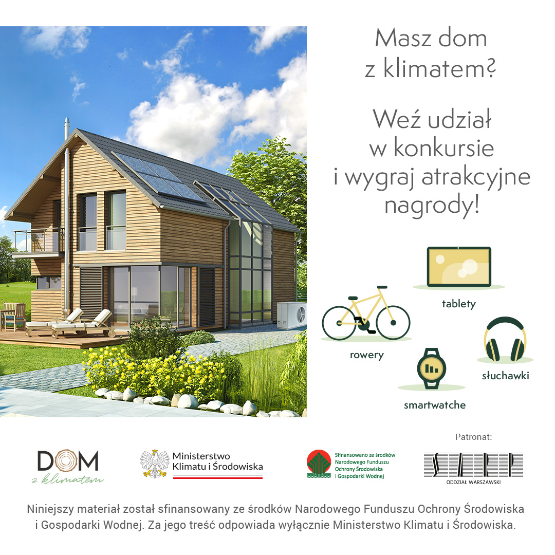 W imieniu Ministerstwa Klimatu i Środowiska oraz Narodowego Funduszu Ochrony Środowiska i Gospodarki Wodnej serdecznie wszystkich zapraszamy na konkurs pn.: „Dom z klimatem”.