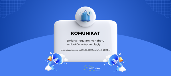 Zmiana Regulaminu naboru wniosków w trybie ciągłym (obowiązującego od 15.11.2023 r.)